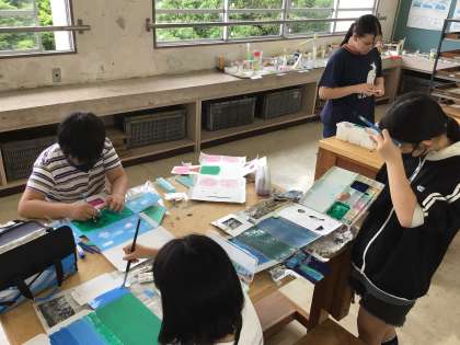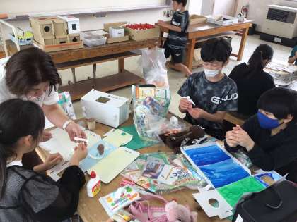6/11 5年図工 公開日 2025/06/12 更新日 2025/06/12 各学年から 5年図工では、のぞいてみるとの作品づくりを進めていました。差し込む光を感じながら、箱の内側に絵の具で絵を描いたり、立体的なものを紙粘土などでつくったりしていました。