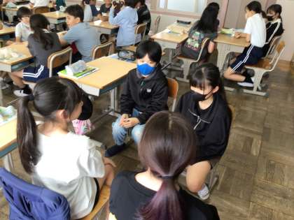 6/12 えがおタイム2 公開日 2025/06/12 更新日 2025/06/12 各学年から 今日のえがおタイム「アドジャン」の様子です。互いの顔を見ながら、楽しく会話できました。目を見て話す、頷きながら聴くといったことを意識しながらえがおタイムを進めていました。
