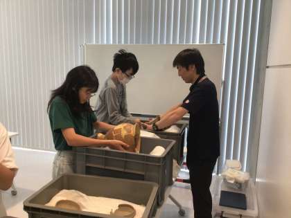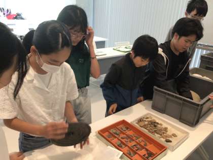 4000年前の縄文土器や器を実際に触らせてもらいました。歴史を感じます。