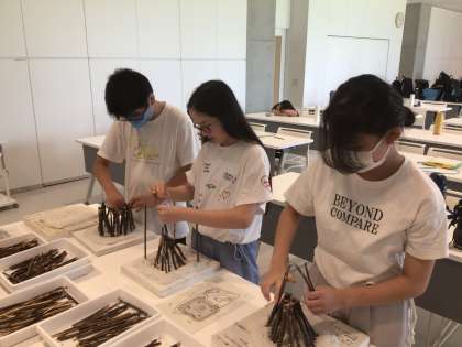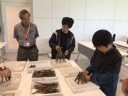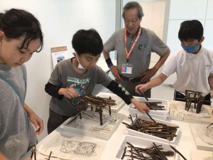 枝を使って竪穴住居を作りました。