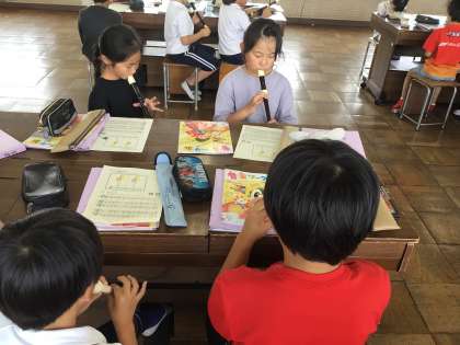 3年音楽では、リコーダーで「かっこう」の練習をしています。今日初めて2番パートを吹いてみました。さらに、小節、縦線、終止線、ト音記号などの音楽用語の説明を聞いた後、音楽ワークで確認をしました
