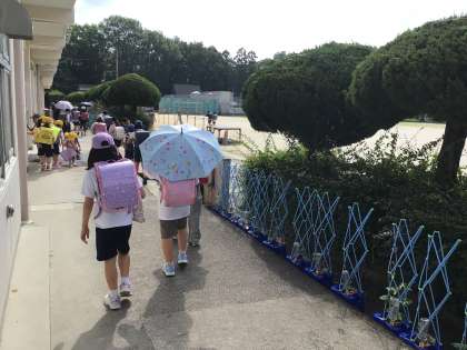 朝から大変蒸し暑い状態です。汗をかきながらもがんばって登校してきました。教室に入るとエアコンの風を感じて涼しいと話していました。