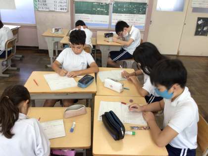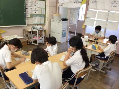 6/17 6年算数 公開日 2025/06/17 更新日 2025/06/17 各学年から 6年算数では、「整数や分数の逆数を求めよう」というめあてで学習を進めていました。分数に対しての逆数は非常に簡単ですが、0.3の逆数になると混乱してしまいます。個人で問題を解いた後、グループで話し合い解き方を共有していました。