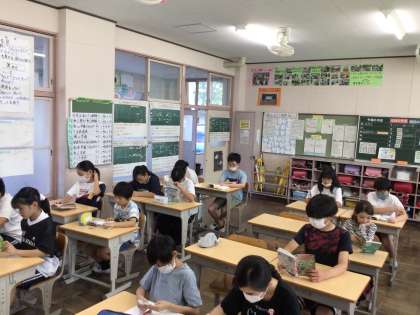 6/18 かがやき1 公開日 2025/06/18 更新日 2025/06/18 各学年から 今日も朝から蒸し暑い朝となりましたが、汗を拭いながら登校してきました。エアコンの効いた教室で、朝の支度をしていました。チャイムがなると、静かに読書が始まりました。