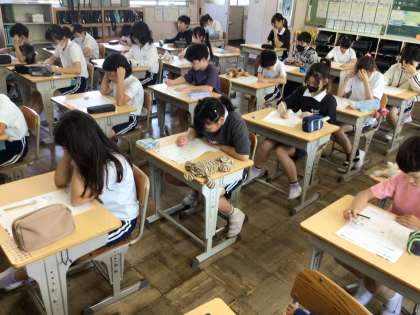 6/18 5年算数 公開日 2025/06/18 更新日 2025/06/18 各学年から 5年算数では、小数のわり算の単元テストを実施していました。集中してテストに取り組んでいました。小数の計算は今後も必要になるのでしっかり復習をしていきましょう。