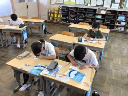 6/18 4年算数1 公開日 2025/06/18 更新日 2025/06/18 各学年から 4年算数は少人数で学習を行っていました。1組、2組、学年教室に分かれて学習を進めていました。垂直・平行と四角形の単元を学んでいます。長方形の特徴に目をつけてどのように作図をしたらよいかを考えていました。