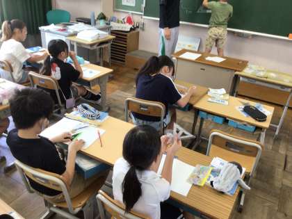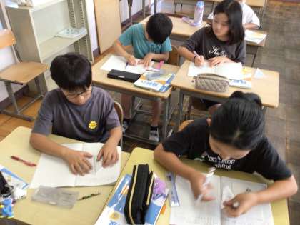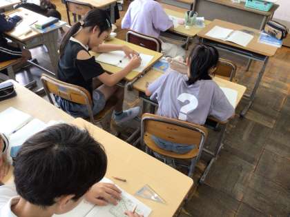 4年算数の学習の様子です。作図の仕方を考えていました。