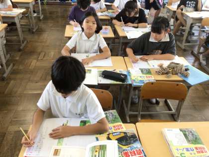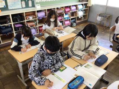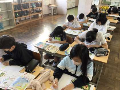 6/18 5年書写 公開日 2025/06/18 更新日 2025/06/18 各学年から 5年書写では、硬筆で「これまでに学習したことに気をつけて、竹取物語を書きましょう」の書写ノートのページに取り組んでいました。集中して一文字一文字丁寧に書き上げていました。