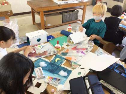 6/19 5年図工 公開日 2025/06/19 更新日 2025/06/19 各学年から 5年図工では、「のぞいてみると」の作品づくりを進めていました。今日が完成予定ということで、急ピッチで進めていました。色や紙粘土等を貼りつけるなどの工夫がいっぱいでした。