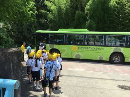 6/19 1年交通安全講習会 公開日 2025/06/19 更新日 2025/06/19 各学年から 1年生は他学年より早めに給食を食べて、豊田市交通安全学習センターへバスで出かけて行きました。センターは平井小学校から近いのでバスの乗車時間はわずかですが、子どもたちは嬉しそうにバスに乗り込んでいました。センターでは、基本的な交通ルールを学習する予定です。