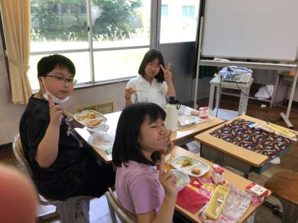6/19 楽しい給食 公開日 2025/06/19 更新日 2025/06/19 特別活動 今日の献立はごはん、牛乳、にぎすフライ、おひたし、生揚げの卵とじ、抹茶ふりかけです。 今日は愛知を食べる学校給食の日献立です。 愛知県や豊田市でとれた食べ物を多く使っています。 おかわりじゃんけんも盛り上がっていました。