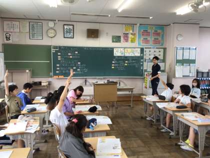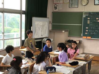 5年道徳では、古いバケツという話を読んで、協力する上で大切なことは何かについて考えていました。先生の問いかけに対して、自分の意見を積極的に伝えて、友達の意見を頷きながら聴くことができていました。