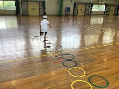 6/20 7・8組体育 公開日 2025/06/20 更新日 2025/06/20 各学年から 7・8組体育では、準備体操の後、5分間走やケンケンパ、なわとびをやりました。体育館にエアコンがつき、涼しい中で走ることができました。