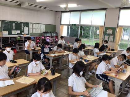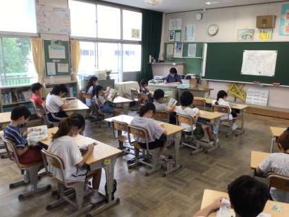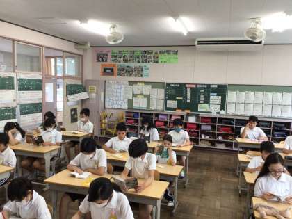 8時25分までに翌日の連絡記入等を済ませ、チャイムがなると静かに読書が始まりました。よい姿勢で本を読むよう意識していますね。