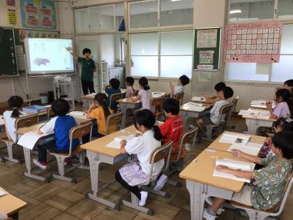 6/24 1年生国語 公開日 2025/06/24 更新日 2025/06/24 各学年から 1年生国語では、「どうやってみをまもるのかな」の学習をしています。今日は、本文には、どんな動物出てくるのかを読み取り、ノートに書きました。