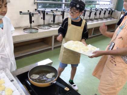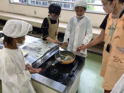 6/26 7、8組生単1 公開日 2025/06/26 更新日 2025/06/26 各学年から 7・8組生単では、ポテトチップスを作りました。2限にジャガイモをスライスして少し乾かしておいたものを、油で揚げました。