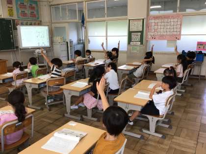 1年生国語では、「こんなことしたよ」の学習をしています。平井小学校の学校生活の中で自分がやっていることを思い出し、発表しました。「本をかりに行ってるよ」「ひらがなの勉強をしているよ」などたくさんの意見が出ました。