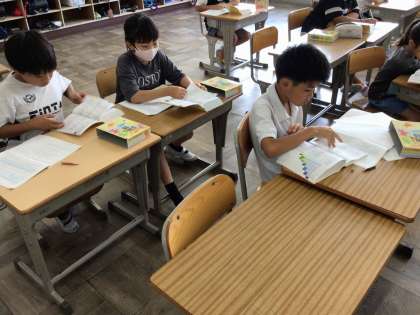 6/27 3年生国語 公開日 2025/06/27 更新日 2025/06/27 各学年から 3年生国語では、「言葉の選び方」について「言葉のきまり」をつかって学習をしました。国語辞典で「まぶしく」「あざやかな」などの言葉を調べ、問題を解きました。