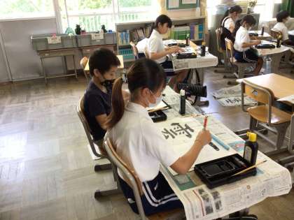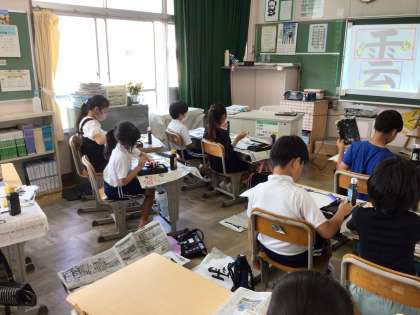 6/27 4年生書写 公開日 2025/06/27 更新日 2025/06/27 各学年から 4年生書写では「雲」の漢字を書きました。はねるところ、はらうところ、まがりのところに気をつけて、のびのびとした文字を書くことができました。