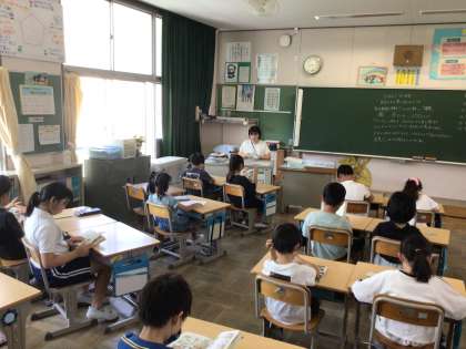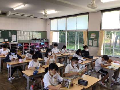 エアコンの効いた教室で、静かに読書が始まりました。姿勢よく本を読む習慣がとてもよいですね。