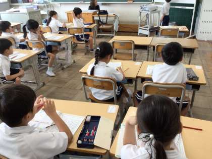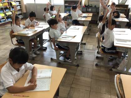 1年生算数では、たし算、ひき算などの復習をしました。どうしてその答えになったか、説明することができました。