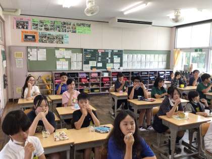 給食の片付けが終わると歯みがきタイムです。曲に合わせてしっかり歯みがきをしました。
