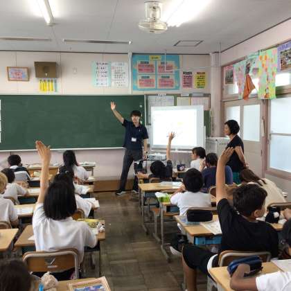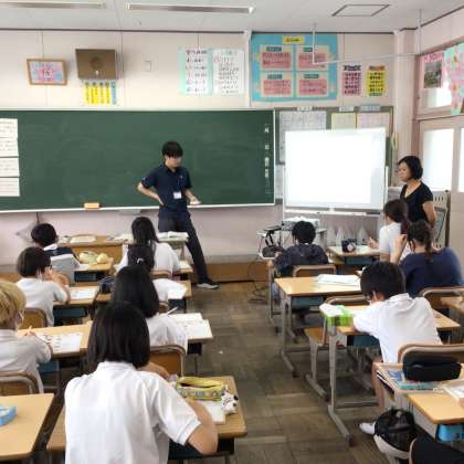 7/2 5年外国語 公開日 2025/07/02 更新日 2025/07/02 各学年から 5年外国語では、アクセントになれ親しもうのページを学習していました。ギターのように日本語と英語でアクセントが異なるものがあるので、ALTの先生とアクセントと発音を確認していました。