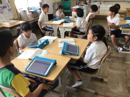 3年生国語では「心が動いたことを詩で表そう」の学習をしています。今日は学習用タブレットを使って、どんなことがあるか思いつくものを付箋で表していきました。