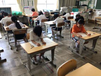 漢字と算数の月例テストです。合格を目指し、集中して取り組んでいます。勉強の成果が出せたでしょうか。