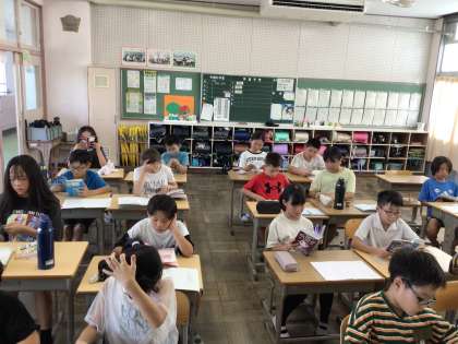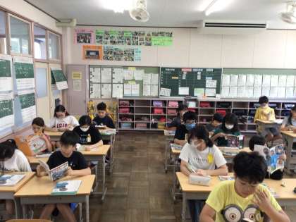 7/8 かがやき1 公開日 2025/07/08 更新日 2025/07/08 各学年から 8時25分までに翌日の連絡等を記入したり授業の準備をしたりしました。チャイムでパッと切り替えて静かに読書が始まりました。
