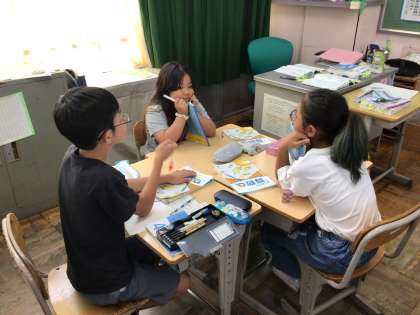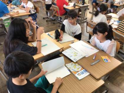小数の学習です。「1289メートルは何キロメートルと表せるか」を考えました。自分で考えた後、班で話し合いました。「ここまでいい?」と班の友達に確認しながら、相手に分かりやすい説明を心がけていました。