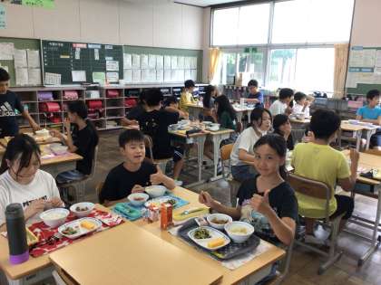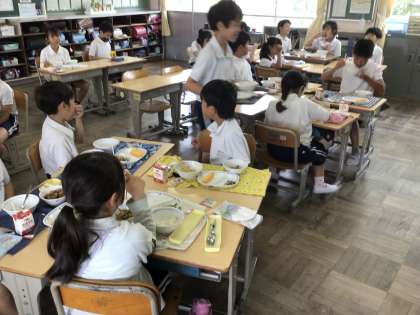 7/8 楽しい給食 公開日 2025/07/08 更新日 2025/07/08 特別活動 今日の献立はごはん、牛乳、筑前煮、厚焼き卵、磯香あえ、ふりかけです。 ふりかけごはんにしたり、筑前煮と合わせてごはんをしっかり食べることができました。