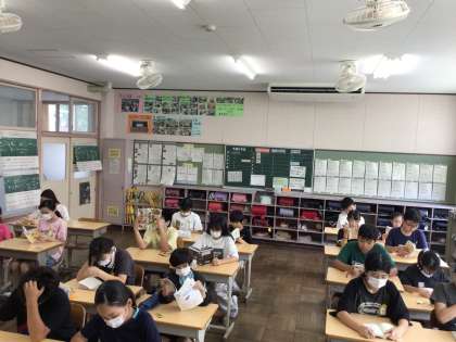 7/9 かがやき1 公開日 2025/07/09 更新日 2025/07/09 各学年から エアコンの効いた教室で静かに読書が始まりました。いい姿勢で読書ができています。夏休み中も少しずつ読書ができるといいですね。