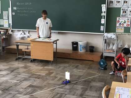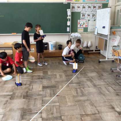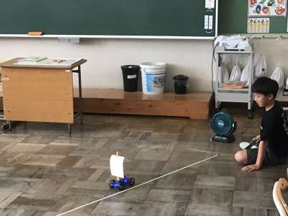 7/9 3年理科1 公開日 2025/07/09 更新日 2025/07/09 各学年から 3年理科では、風の力のはたらきの単元を学んでいます。「風の力の大きさを変えると、風がものを動かすはたらきはどうなるだろうか」というめあてで学習を進めていました。実際に実験を行い、計測をしながら考察していました。