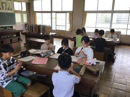 7/10 4年音楽 公開日 2025/07/10 更新日 2025/07/10 各学年から 4年音楽では、「校歌」「小さな世界」「いいこと ありそう」などを明るい声で歌いました。また、音楽用語などを音楽ワークで確認をしました。「歌い方や演奏の仕方を工夫しよう」というめあてで、「風のメロディー」をリコーダーと歌を互いの音を聴きながら練習をしました。