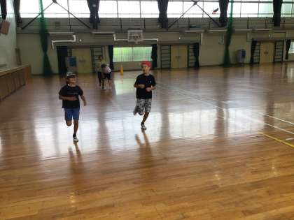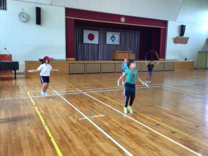7/11 7・8組体育 公開日 2025/07/11 更新日 2025/07/11 各学年から 7・8組体育では、準備体操の後、5分間走、ケンケンパ、なわとびをやりました。ボールを使った運動にも挑戦しました。