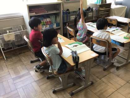7/14 1年生国語 公開日 2025/07/14 更新日 2025/07/14 各学年から 1年生国語では「大きなかぶ」の学習をしています。今日は、登場人物のなかで、好きな人や動物を選んで、気持ちを考えました。