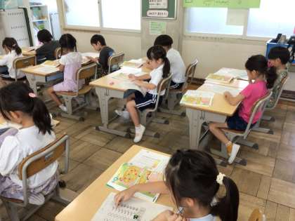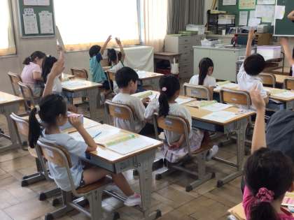 1年生算数では「かずしらべ」の学習をしています。どの果物が多いかを、一目でわかるためには、どのように表すとよいか考えました。
