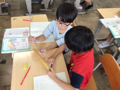 7/15 2年算数 公開日 2025/07/15 更新日 2025/07/15 各学年から 2年算数では、長さの単元を学んでいます。「1cmより短い長さの表し方を知ろう」というめあてで学習を進めていました。ハガキや教科書などcm単位できっかり測ることができない長さについて、どのように表すとよいかを学習しました。