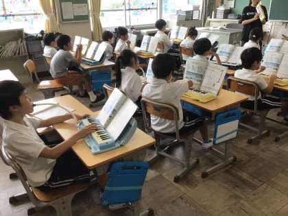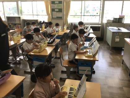 7/16 2年生音楽 公開日 2025/07/16 更新日 2025/07/16 各学年から 2年生音楽家では、鍵盤ハーモニカをつかって、「ぷっかりくじら」の演奏をしました。みんなで合わせて演奏することができました。夏休みも宿題になっています。頑張って練習しましょう。