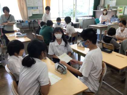 7/16 6年生算数 公開日 2025/07/16 更新日 2025/07/16 各学年から 6年生算数では、図形の面積を求める学習をしています。面積の公式を使って、今日は、「ラグビーボール形の面積」を求めました。個人で考えたことをグループで共有し、活発な意見交換ができました。
