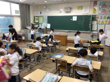 大雨の朝となりましたが、元気よく登校してきました。最終日の予定を連絡帳に書いたり、授業の準備をしたりしていました。今日も時間を意識して行動ができていました。