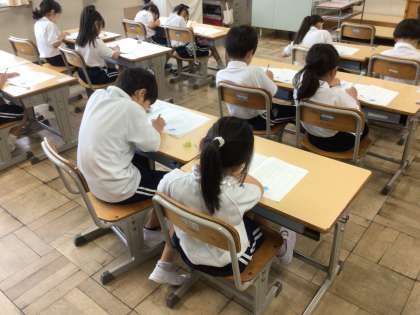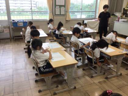 7/17 1年生国語 公開日 2025/07/17 更新日 2025/07/17 各学年から 1年生国語では、「ことばのきまり」をつかって、今まで習ったことの復習をしました。「てん、丸」についての問題や、「は,へ,を」の問題を解きました。
