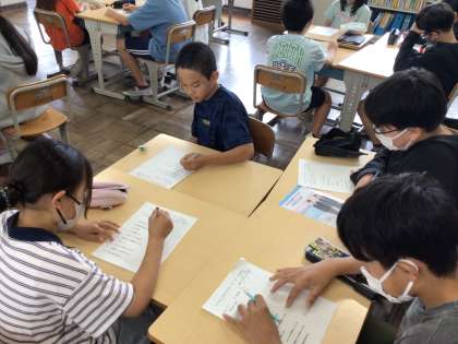 7/17 えがおタイム1 公開日 2025/07/17 更新日 2025/07/17 各学年から 毎週木曜日のスキルタイムはえがおタイムです。今月は「いいとこみつけ」です。友達のよいところをカードを通して伝えていきます。