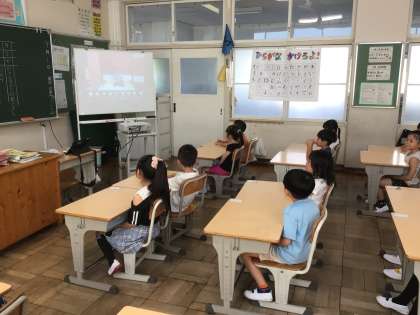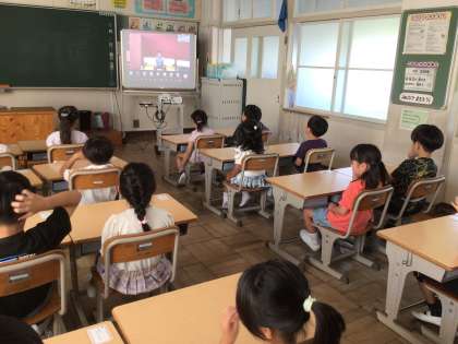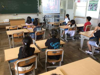 オンライン集会2 みんな真剣に校長先生のお話を聞いています。9月からも目標をもって頑張っていきましょう。