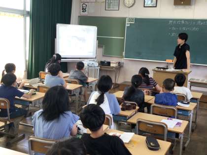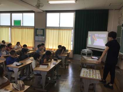 5年総合では、野外炊事(カレー)の流れを覚えようというめあてで進めていました。映像を見ながら野外炊事の説明を聞いていました。キャンプは今月の18日、19日とすぐです。すごく楽しみな表情で話を聞いていました。