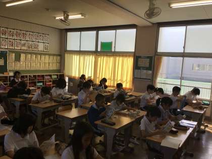 8時25分までに朝の支度を終えて、チャイムを合図に静かに読書が始まりました。夏休み前同様、時間を見て行動できるので素晴らしいですね。