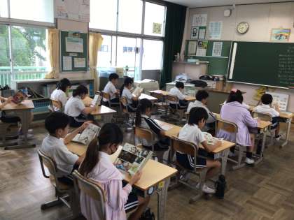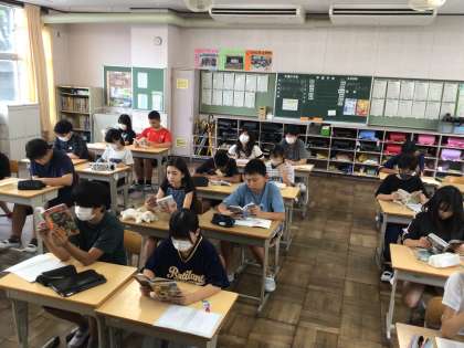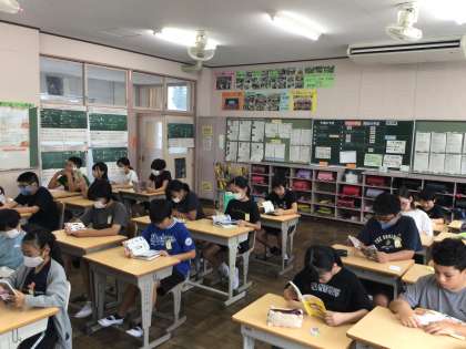 8時25分までに翌日の連絡を書いたり、授業の準備をしたりし、チャイムを合図に静かに読書が始まりました。