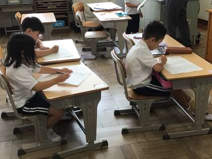1年生国語では「ことばあそびうた」の学習をしています。ことばあそびうたを読んで、自分で作ってみました。色々な物や様子を、音に表してみました。