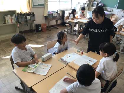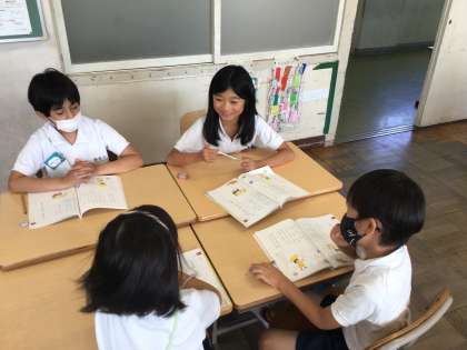 2年国語では、「いろんな おとの あめ」という詩を読んでいます。工夫をして読むにはどうしたらよいか、班で話し合っていました。